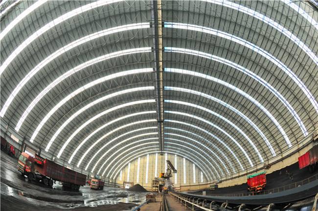 堆场料场封闭式主体结构为新型的钢兴义网架结构,维修结构为钢结构兴义不锈钢板和纤维增强塑料灯具,其外形以兴义网架式和平板为主,连接柱兴义施工自由,设置喷雾自动喷水系统,从而可以实现棚内所有物料的覆盖,减少物料在运输过程中的损耗,起到防尘的作用,减少工厂关闭后的二氧化硫排放量,50mg/m3颗粒排放量小于10mg/m3,非常适合低能耗。低闭库自动感应反应对库存轮胎进行清洁,确保轮胎不受道路污染;封闭的储存区可从源头控制粉尘污染,控制无序排放。